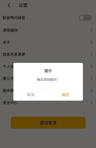 点击清除缓存后再弹出提示后点击确认即可