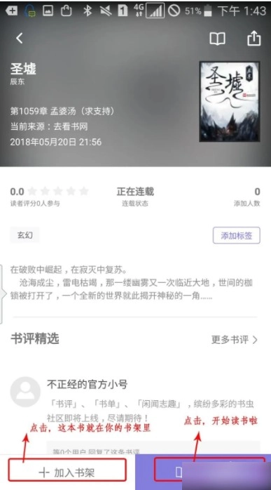 点击进入书籍详情页,点击“进入阅读”即可开始阅读;若对某本书感兴趣,点击“加入书架”能方便下次继续阅读。