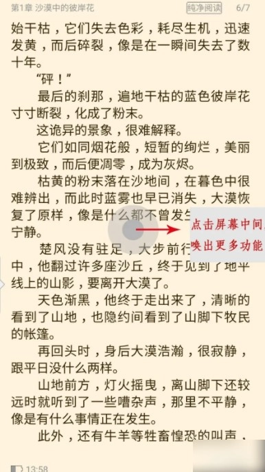 左右滑动可实现翻页操作,轻触屏幕中间区域能调出更多功能选项,从中可以开启自动滚屏或者听书模式。