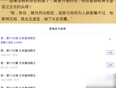你可以通过底部功能栏的“换源”选项来挑选不同的书源,也能点击“缓存”按钮来完成离线阅读。