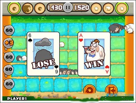 在策略模式对应的场景里,就像一个对决赛场,只要点击上下两行标注着“GO”的文字,就能释放出顶部栏绿色圆圈内处于待命状态的小羊。这里的规则是大羊能战胜中羊,中羊能战胜小羊,整体模式和拔河比赛相似,需要对双方山羊的力量进行比较。要是有山羊成功到达对方的阵营,就能获得相应分数,最后统计出总分更高的那一方即为获胜者。