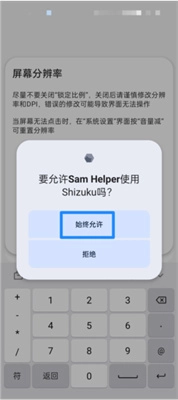 最后只要一直允许samhelper使用shizuku就可以了。