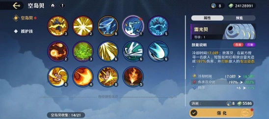 获取空岛贝碎片后,你可以用来制作和升级空岛贝,增强其技能效果,还能提升自身的基础属性。