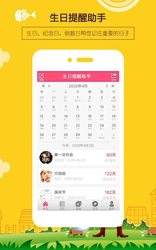 支持从手机通讯录批量导入联系人信息,实时显示日期倒计时提示。