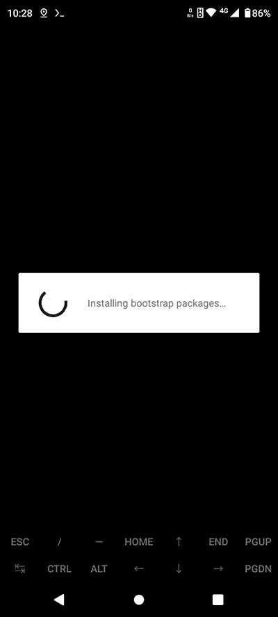 首次使用Termux时,需要等待“Installing bootstrap packages(安装引导程序包)”这一步完成,具体可参考下方图示。