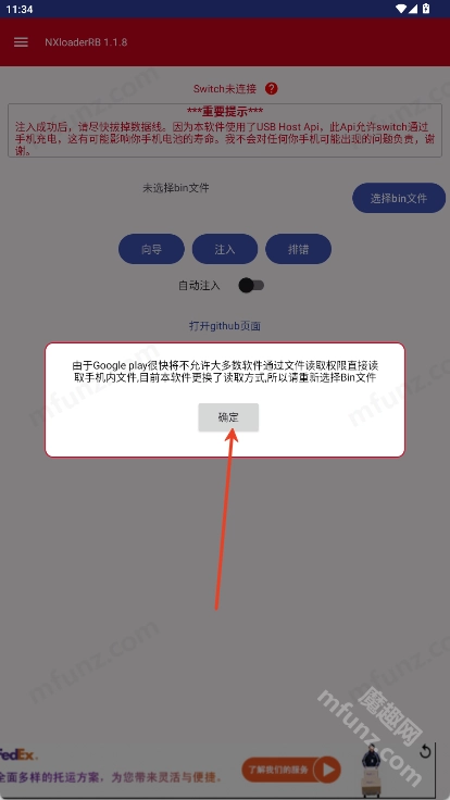 手机会弹出类似“是否要用NXloaderRB打开设备”的请求,选择确认即可。