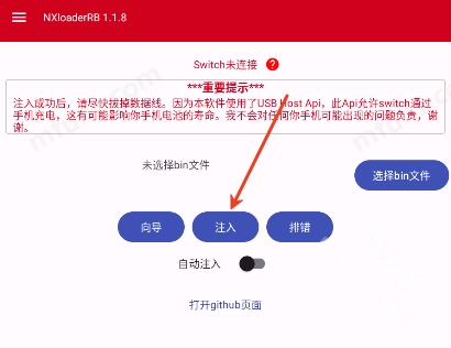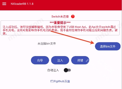 还能打开自动注入按钮,系统会自动注入bin文件