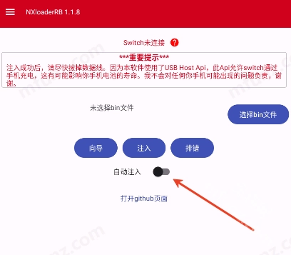 NXloaderRB,nxloaderrb简单来说是一款Switch快捷注入启动工具,只要打开手机就能启动任天堂Switch游戏机。nxloaderrb汉化版的优势在于界面全程中文显示,让操作更便捷。需要留意的是,使用nxloaderrb前要通过OTG数据线与Switch完成连接,之后就能在手机上导入bin文件快速启动游戏机了!