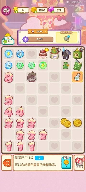 升级之后的蛋糕活动前两期,建议至少留一期用来把数字升到九再卖掉。蛋糕活动特别费体力,千万别随便点!这两期好好操作的话能赚好几万金币,轻松就能把一万二的格子开出来了。
