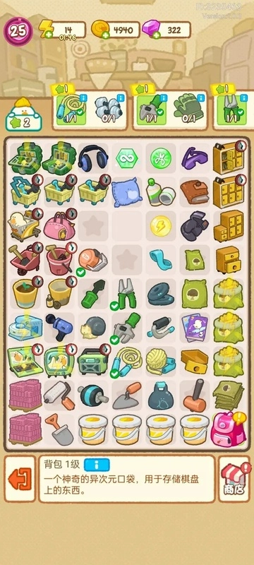 像盆栽这类物品,得用种子来合成,而种子又需要树袋子,树袋子则要通过花盆获取。但花盆产出树袋子的数量不多,所以咱们可以只专注点花盆,把攒下来的多个树袋子先留着不点,等觉得数量足够了再用掉,这样能省出不少格子空间。(毕竟树袋子用完会占位置,种子本身也占位置,要是盆栽没升到足够多的等级,那占的位置就更多了。)