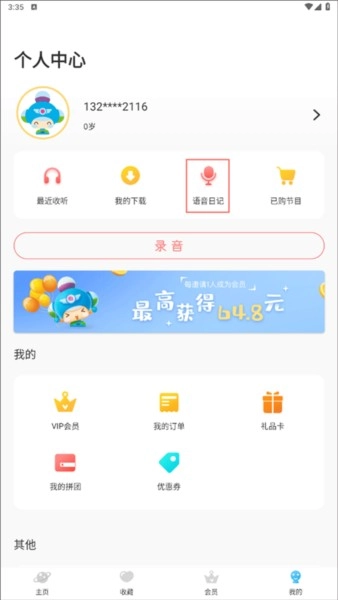 在呼呼收音机个人中心界面点击“语音日记”