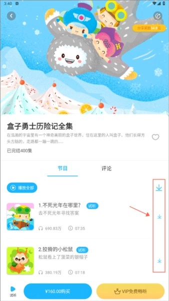 进到专辑界面点击右侧的“↓”即可进行啦。