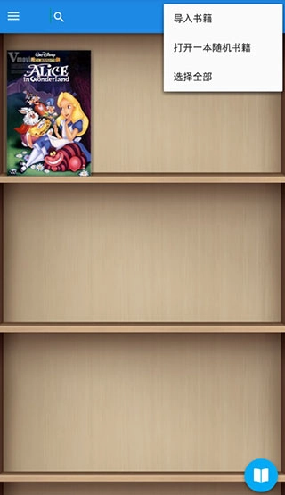 点击书架页面右上方的按钮,即可选择“导入书籍”功能,进而搜索本地书籍或书架上的图书。