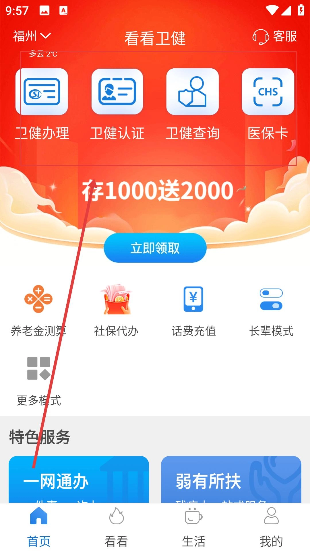 在主界面能够办理卫健业务认证,还可以使用养老金规划之类的辅助工具。