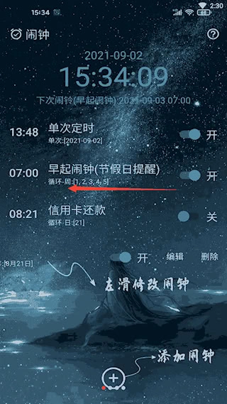 进入主界面后即可开始创建所需的特定类型闹钟提醒