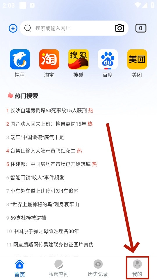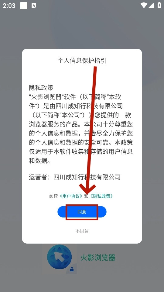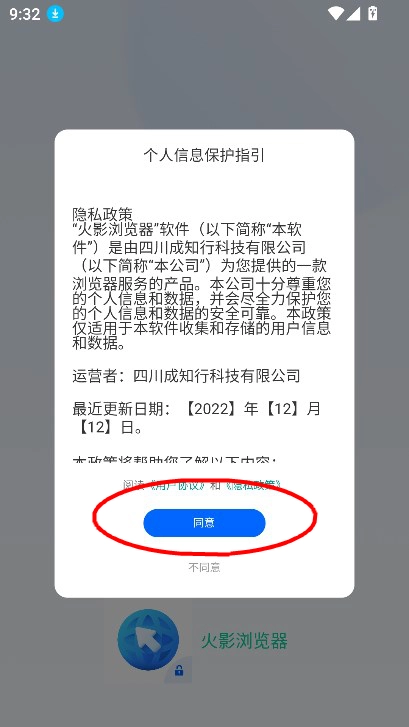 1. 下载安装火影浏览器app,安装完成后打开该应用。