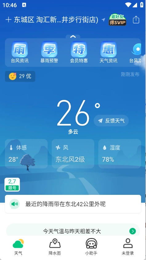 自动定位当前所在位置,推送适合的穿衣、防晒建议以及过敏源预警信息,从而实现个性化的气象服务适配。