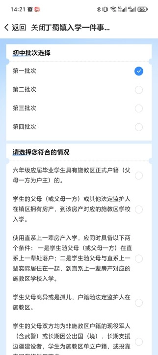 请根据自己所属的入学批次以及符合的条件进行选择,接着点击“下一页”,依次填写“学生信息”“监护人信息”,还有“房产信息”“公司信息”“社保信息”等内容,之后手动选择并确认想要就读的学校。需要注意的是,信息填写要按照顺序来进行。