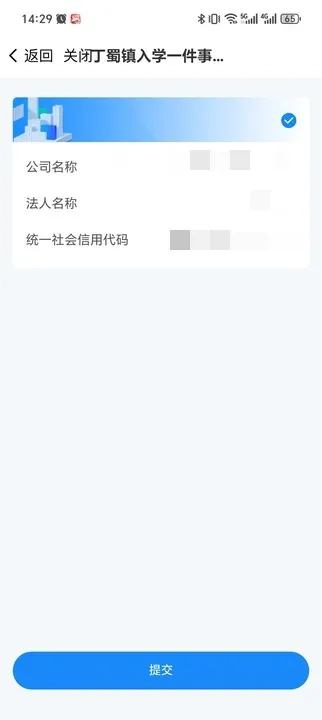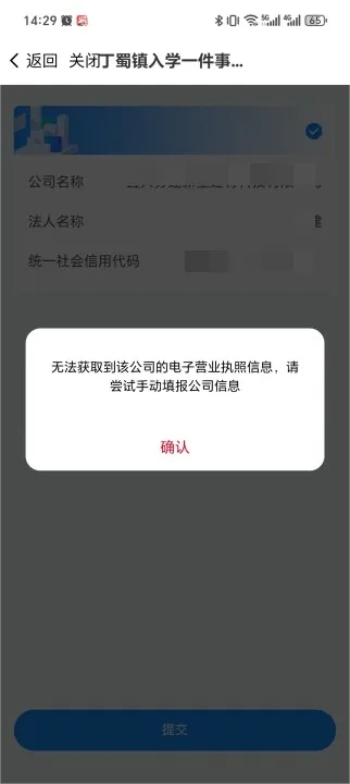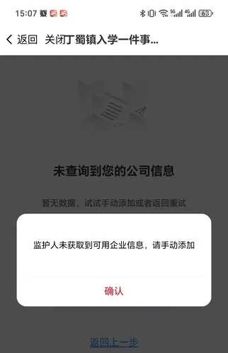 选择需要查询的监护人,输入“统一社会信用代码”进行自动匹配,未匹配到信息的可手动添加公司信息。匹配到公司信息,申请人选择提交的公司信息后点击提交,系统会自动获取营业执照,若是没有获取到营业执照可手动上传;若未获取监护人名下的公司信息,根据页面提示可手动添加公司信息或重新匹配公司信息。