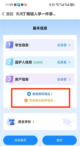 申请人可在基本信息填报界面点击查看授权情况与指标选择情况。