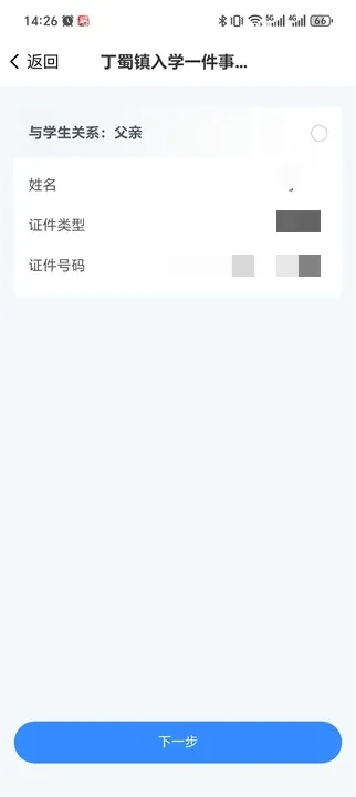 填写学生基本信息,包括姓名、身份证号码(若未领取身份证,则填写户口簿上的身份号码)等内容。点击“下一页”后,页面会显示“学生信息已完善,请继续填报”的提示。