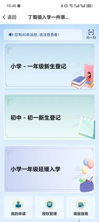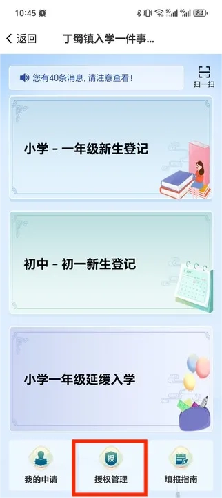 所有填写的监护人都需通过各自的“看宜兴”账号进入“丁蜀镇入学一件事”中的“授权管理”模块完成授权,请监护人提前注册“看宜兴”并完成实名认证。授权操作需由监护人主动进行!