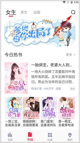打开软件进入首界面后,用户可在下图中框选的位置搜索自己喜欢的小说。
