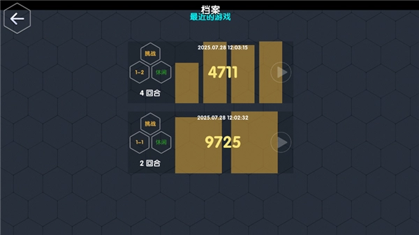 选择对应的关卡数据就能进入回放模式,查看你的对局过程。