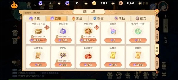 真玉商城里主要售卖神兽礼包、内丹礼包,还有坐骑、时装、改名卡这类物品,这里基本是大佬玩家才会光顾的地方,不太建议小氪玩家来。没什么其他好说的了。