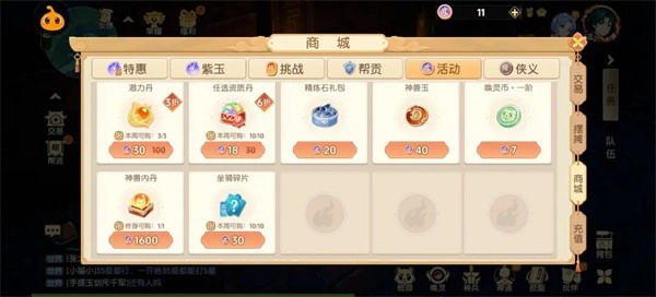 活动商城里最该优先考虑的是神兽内丹,它需要1600币,平民玩家和小氪玩家建议优先入手这个。要是大佬对神兽内丹没需求,那可以选择购买打折的契灵资质丹和潜力丹。