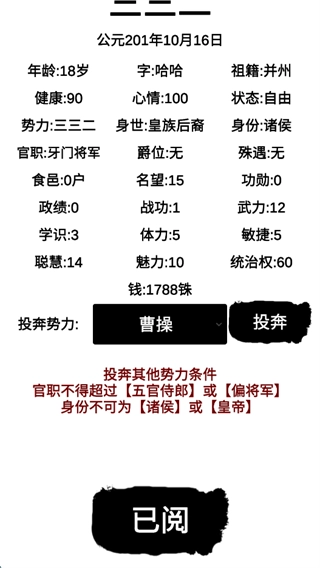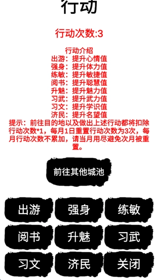 角色通过行动能够提升对应的属性值,从而变得更强大,这样在乱世里就能具备自保的能力。