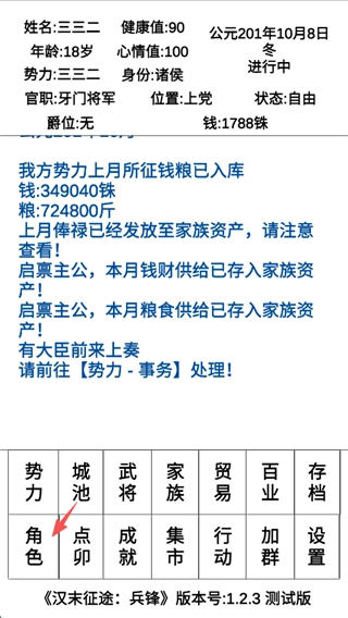 接下来便是势力的发展环节,玩家能够点击屏幕左下方的“势力”按钮。