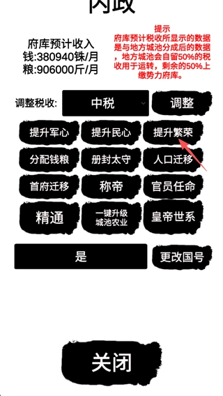 其中核心是提升己方势力的繁荣度,这能增加己方每月的收入,而游戏里多数行动都得消耗资金。