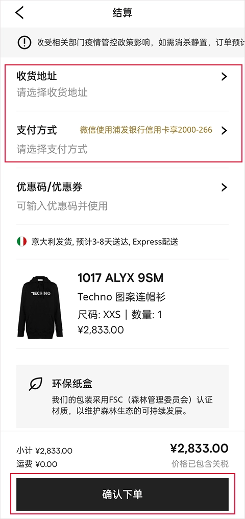 填写收获地址、选择支付方式,点击确认下单即可。
