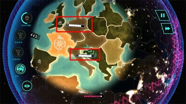 放大地图后,点击其他势力能够执行攻击、研究、扩张、拆除或是建造导弹等指令。