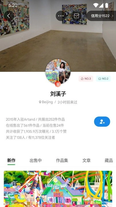 社交与互动:艺术爱好者和收藏家可以关注心仪的艺术家,与他们在线交流,了解艺术创作背后的故事,还能对喜爱的艺术作品、文章、帖子等内容进行点赞和评论。