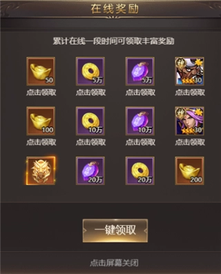 在线时间越长,可领取的奖励越多,包括元宝、金币及其他实用道具,非常适合挂机玩家。