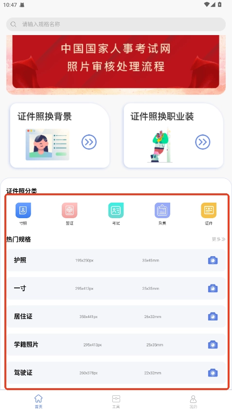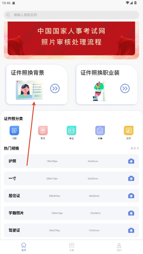 进入应用后选择“证件照”功能入口。