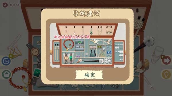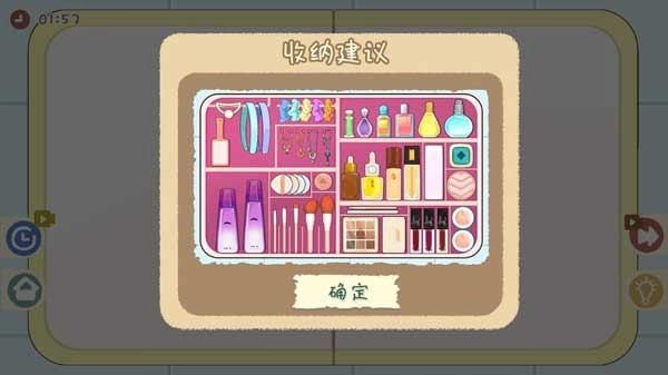 进入关卡后,就可以开始收纳操作了。要是到后面不清楚该怎么收纳,你可以点击右下角的提示按钮,按照给出的收纳建议来完成收纳。