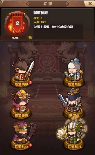 联盟共有六大功能,分别是联盟捐献、联盟商店、联盟管理、联盟战、联盟boss和联盟科技。其中联盟商店和联盟管理这两项,我们先不展开讲解。