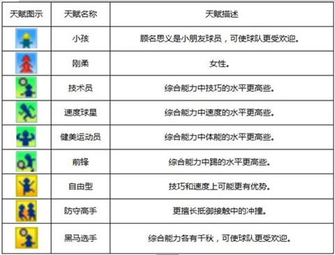 不同球员的天赋各有不同,并且只有当球员自身的成长潜力达到一定级别时,才会出现不同的天赋描述。例如在游戏前期,我们会看到很多“专项天赋”的描述。