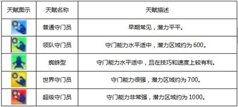 还有一种会单独列出天赋属性的情况,那就是球队里至关重要的守门员,他们的天赋描述和前两组存在些许差异。另外这里要强调一个识别技巧:可以通过颜色来判断球员是否足够强大,具体来说,能力测评从弱到强对应的颜色依次是蓝、绿、黄、红。