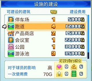 球员能够借助设施来获取研究点数。调整教练的训练方式,可以让多名球员都能加以利用。要是对球员的影响比较显著,那么他们在利用这些条件时,就更易于积累光环。