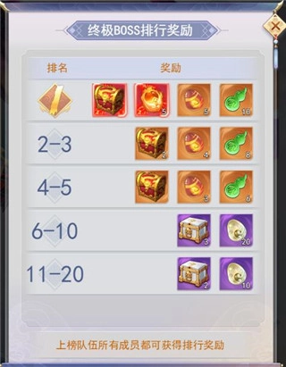 伤害排名奖励规则:此排名的结算对象为队伍,未组队的玩家个人造成的伤害将等同于队伍伤害。