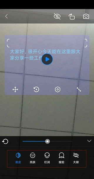 支持高清美颜,任意调节瘦脸、磨皮、大眼等参数。