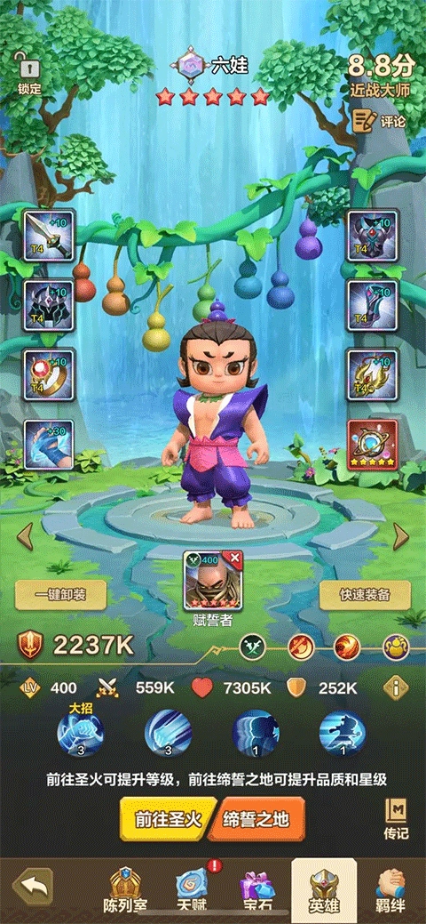 玩家能够借助游戏里的神庙提升英雄的星级,从而获得属性方面的加成。当英雄星级达到五星时,就能解锁天赋系统,此时可以自主选择攻击或防御类词条进行强化;而当英雄发展到最终阶段,其技能机制还会得到进一步的优化。
