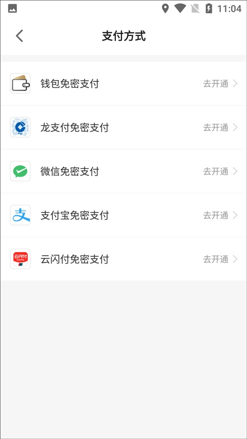 第二步:如果用户还没有开通可用的支付方式,需要进入【我的】-【支付方式】页面,开通能支持刷脸乘车的免密支付方式。目前刷脸乘车支持的免密支付方式有钱包免密支付、建行龙支付和微信免密支付。