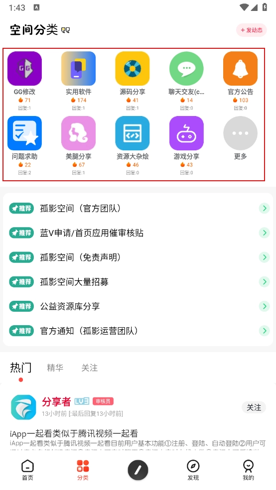 进入分类板块中,涵盖了各个板块的社区。