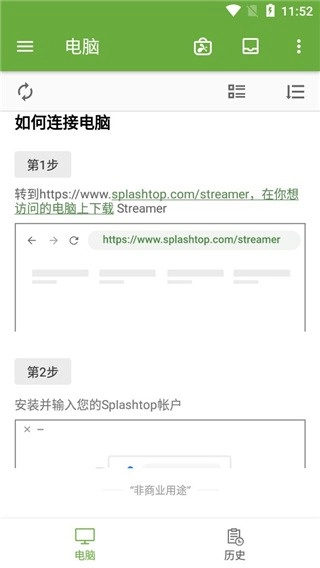 在手机上安装好splashtop应用后进行账号登录,若还没有账号,用户可以直接在线完成账号创建。