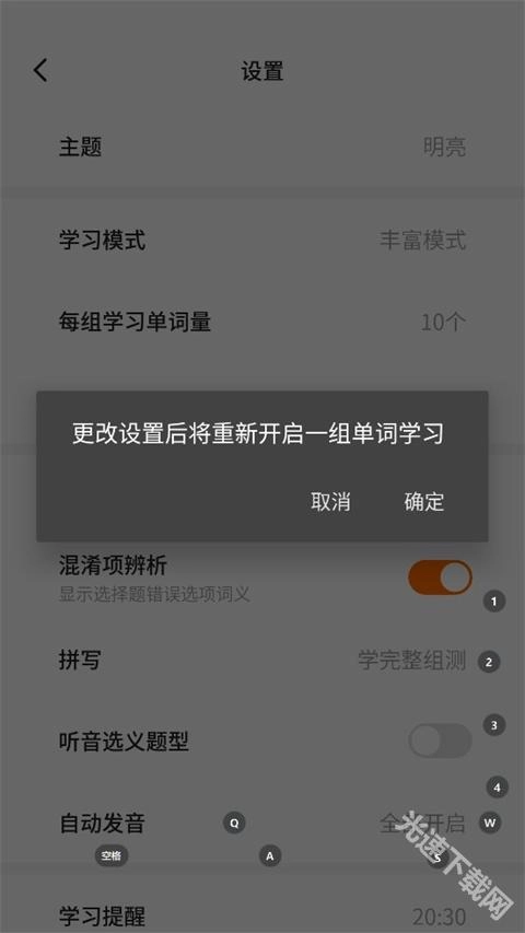 有三种单词量模式可供选择,数量分别为10个、15个和20个。
